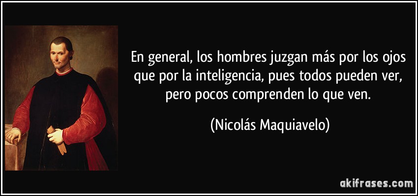 Si lo jugás bien (aparentás todas las virtudes que la gente espera), podés hacer lo que realmente hay que hacer sin que se note el esfuerzo.Lección para hoy (y para siempre)Cuando mires a un político, recordá la frase de Maquiavelo: